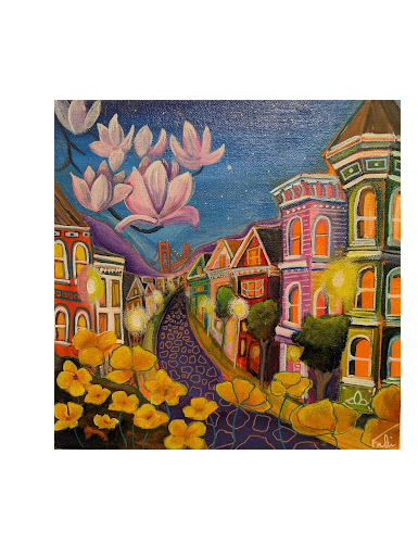 Starting with SF Open Studios, I went to the opening night at ARC and saw the lovingly hand carved block prints of Sushma Kothari. She moves between India and San Francisco, and the parallels in the winding, rambling, magical moments of architecture can make it hard to tell which place she is depicting at times, in the best way. Walking through the lower floor of ARC, I was able to peep a few studios and talk with silvi alcivar, the pop-up typewriter poet who has been haunting the streets of San Francisco with her unique literary offerings for 13 years! She received an Honorable Mention at the ArtLaunch reception party for ArtSpans SF Open Studios that I wrote about mid-October. I also talked with Lena Lee, who has been busy peddling her photorealistic watercolor explorations of light, reflection and color at multiple SF Open Studios venues around SOMA this month.