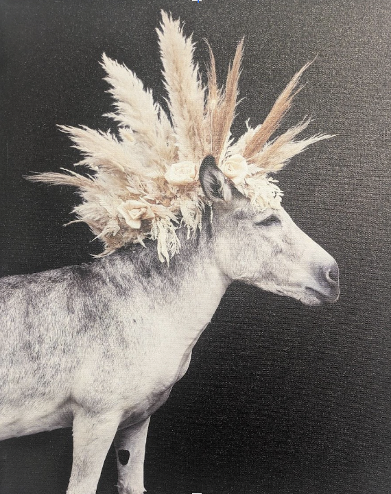 Little Raven Gallery, owned by long time SOMA business owner Laura Kudritzi, hosted a two day exhibit of photographs with artist and donkey-parent Beth Berman. Beth is a previous business partner of Laura Kudritzi, the two shared a wedding photography business on the corners of 5th and Howard ten years ago. Beth received a cancer diagnosis and leaned on her donkey and her love of photography for an artistic outlet. The results were romantic and whimsical, large prints of donkeys dressed in bouquets, on a stark black backdrop. We talked about Beth's hair loss and Laura's daughter having her picture on the front of the newspaper for fighting a rare illness. These two create a lovely corner of the art community in SOMA.